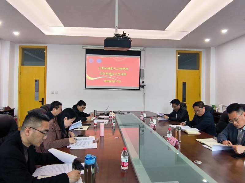 2026年3月13日下午,计算机科学与工程学院党委在宜宾校区A6-521会议室召开2025年度中层党员领导干部民主生活会。学校党委常委、副校长胡光忠,党委巡察办公室专职巡察组副组长谭辉、党委宣传部网络宣传与舆情管理科科长张引到院督导会议。学院党委班子成员全体参会,其余党委委员列席会议。会议由学院党委书记张潇文主持。